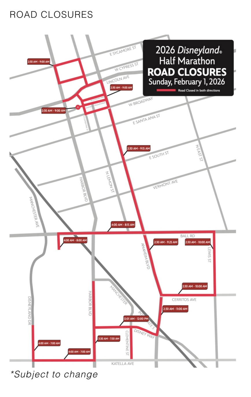 The Anaheim ICE area will experience increased traffic and street closures on Sunday, February 1, 2026 due to Disneyland's Half Marathon. Please review the Marathon course below (in red) and plan your route on the day accordingly.